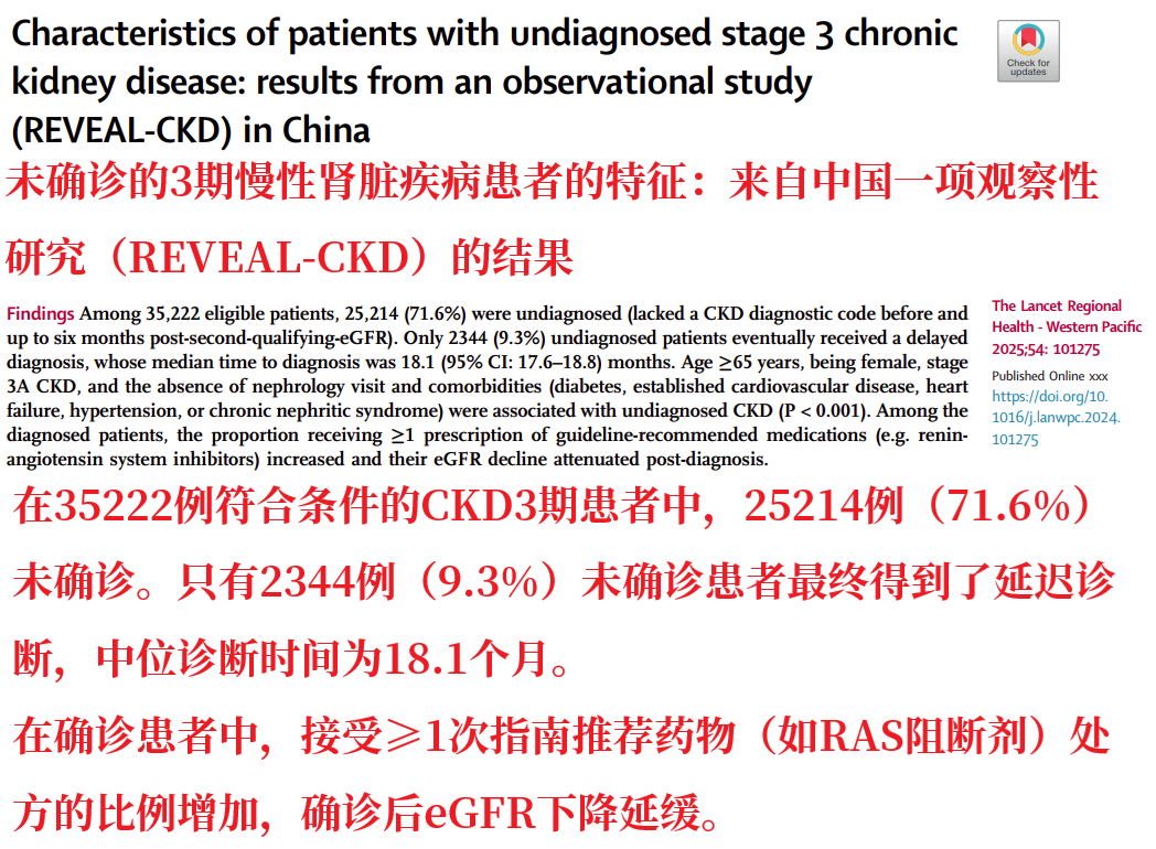 可惜的是,证据泰斗医学期刊《柳叶刀》发表的一项商榷数据长远:我国CKD3期的慢性肾病患者中,跳跃70%莫得实时确诊!确诊后也不一定例律随访了!